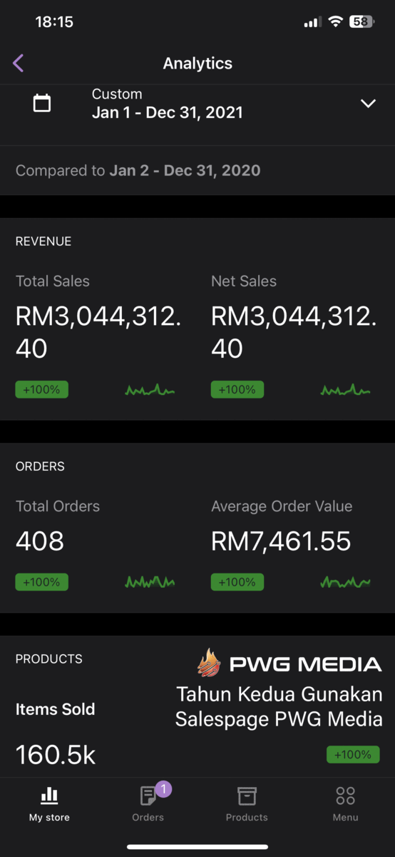 Ini adalah result dari conversion yang makin meningkat selepas dapat sentuhan dari saya & team PWG Media.